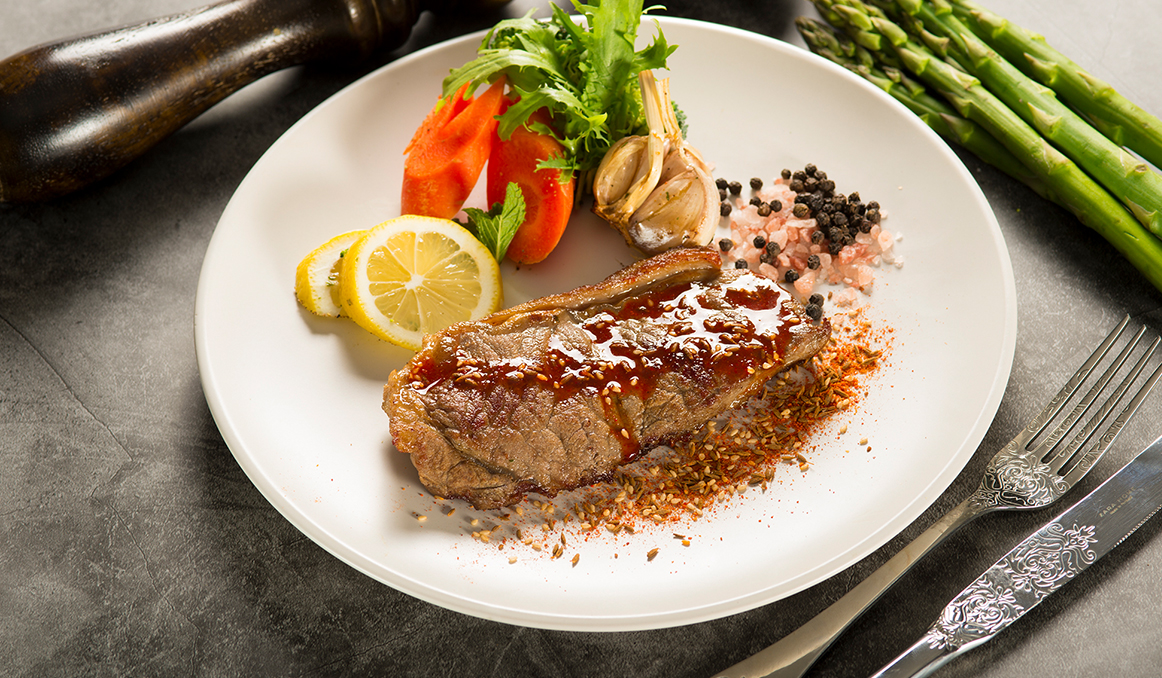 脊椎骨(7-11肋)兩側部位肉,部位肉酮體占3.6%,表面去風干肉、淤血肉及軟硬骨,保留自然脂肪,肉質紅白相間,呈大理石花斑紋狀,肉質細嫩,脂肪含量較高,香甜多汁,不干澀。