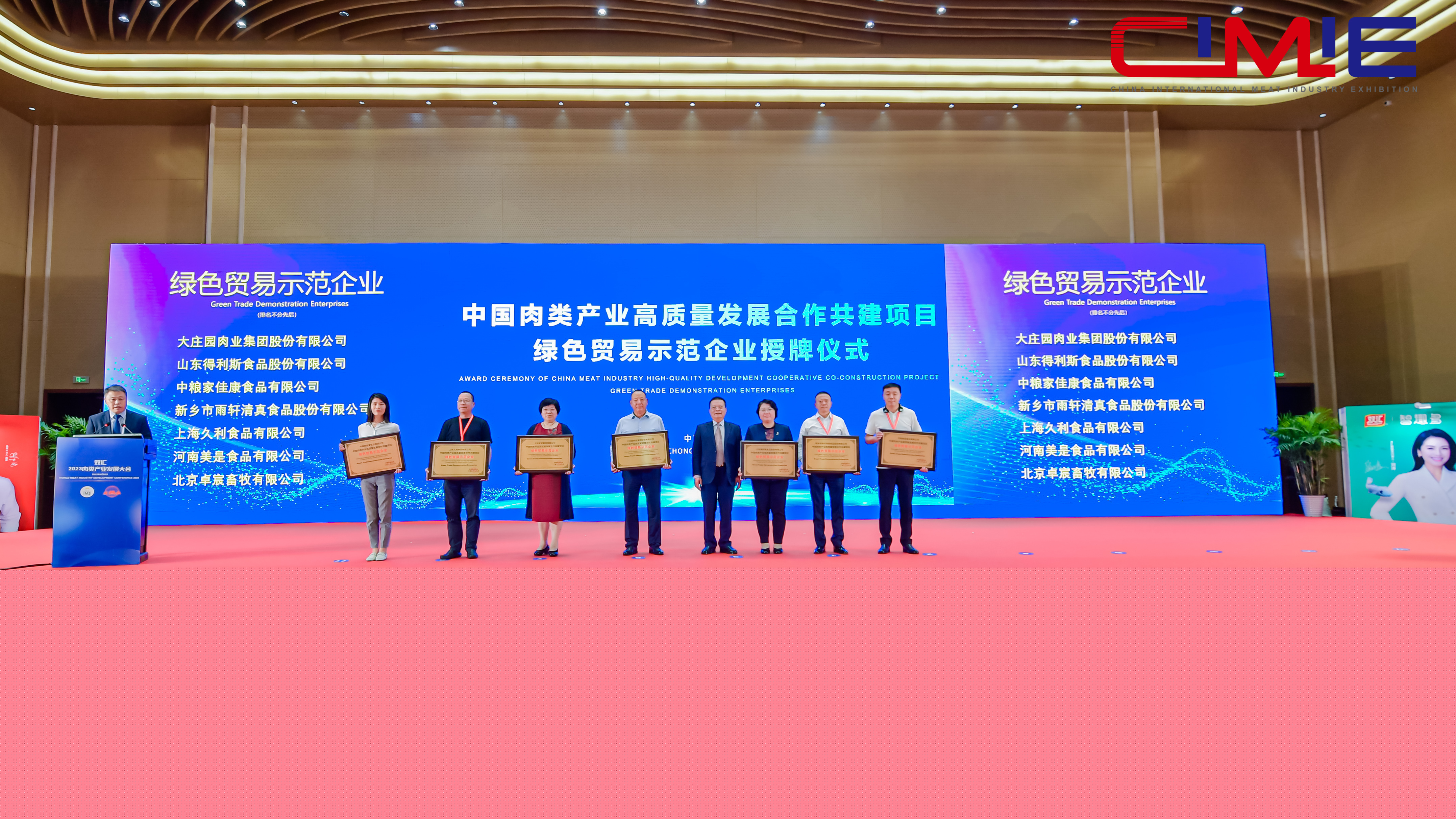 在隨后舉行的中國肉類產業高質量發展合作共建項目——綠色貿易示范企業授牌儀式上,大莊園集團與另外六家企業被授予“綠色貿易示范企業”,共同促進肉類產業高質量發展。