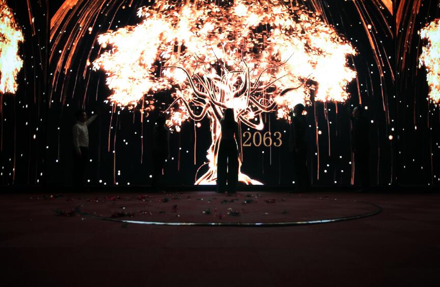 晚會的最后,以陳姣姣為首的集團(tuán)五名領(lǐng)導(dǎo)走上臺,代表董事長開啟了“希望之樹”。那棵象征著大莊園的“希望之樹”從1982年開始成長,一直長到了2019、2029、2059、2099……